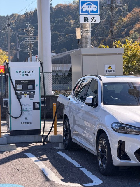 【車種】: BMW iX3 【充電速度】: 普通 【充電した時間】: 約30分 【ひとこと】: この辺ではまだ貴重な90キロ充電器 助かります。