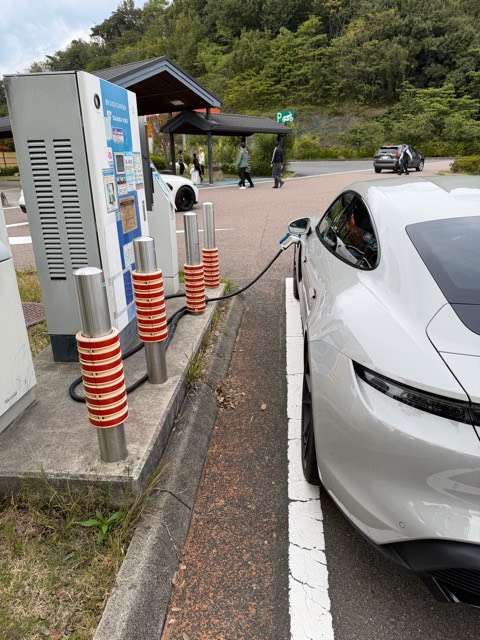 【車種】: Taycan 【充電速度】: 遅い(38キロ) 【充電した時間】: 約10分 【ひとこと】: ケーブルは長すぎるぐらいw トイレ休憩時の充電に適しています。