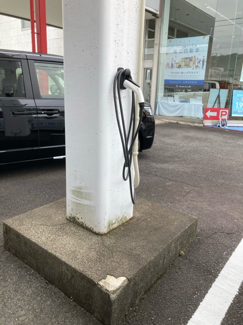 裏手の駐車場に1つあります。 プラグを挿して、カード認証したら充電開始します。 宿泊以外の人も時間帯によっては、充電できます。