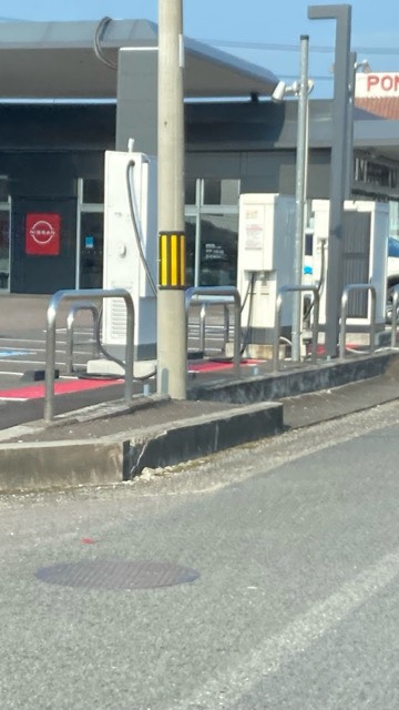 外置きで自由に使える充電器は急速のみ。普通充電器は工場内にあるとのことで、使用時は店員に車の移動と充電の依頼が必要。なるべく普通充電器を使用したいと思っているので、これは不便。必然的に普通充電器は店舗営業時間内のみの使用となる。