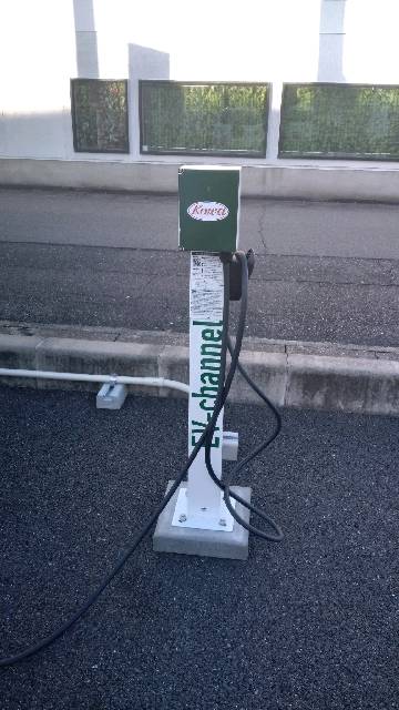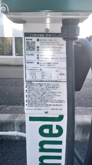 駐車場の北西端に6kW充電器1台設置されています。 利用に際しPIYO CHARGEアプリをインストールして下さい。 Bluetoothによる認証です。 充電カードは使えません。