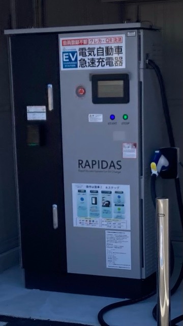 この充電器は、45分連続利用できるので買い物がゆっくりできました。ありがたい。充電利用も充電カードが不要でクレカとPayPayが使えます。今回は楽天ペイで使ってみましたがポイントも貯まりました!