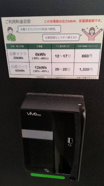 について 駐車無料。 認証不要。 kWh単位の従量課金制(110円/kWh) クレジットカードまたは二次元コード決済( VISA / Master / JCB / Diners / AMEX / PayPay / d払い / auPAY / 楽天ペイ )