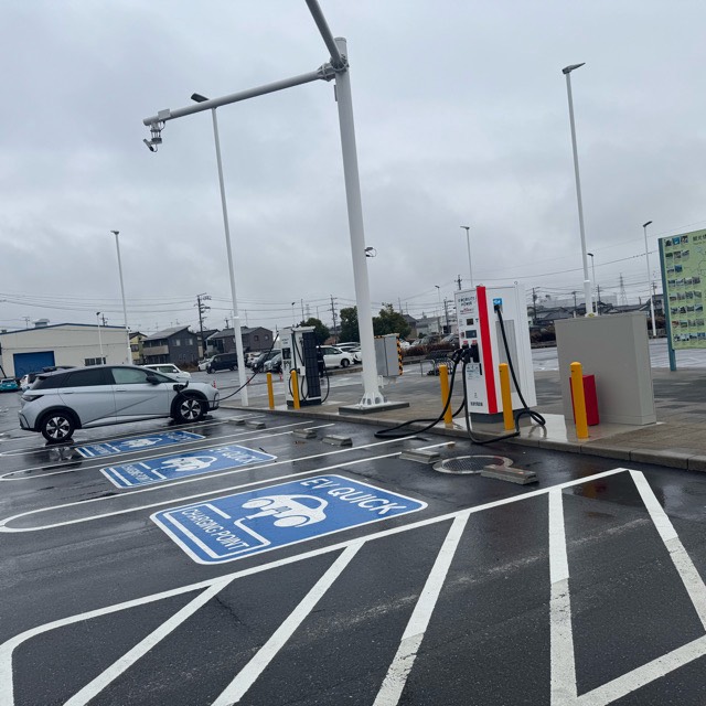 11月6日伺いました。 30kw充電器の西に急速充電器が新しく設置されて電源は入っていました。 新電元製90kw機2口急速充電器、ABB製150kW機2口急速充電器でした。 車室のアスファルト上にEVマークが塗られてます。 三角コーンは充電器周りに見当たりませんでした。 ※新設置されたQCはビジター充電1分につき77円