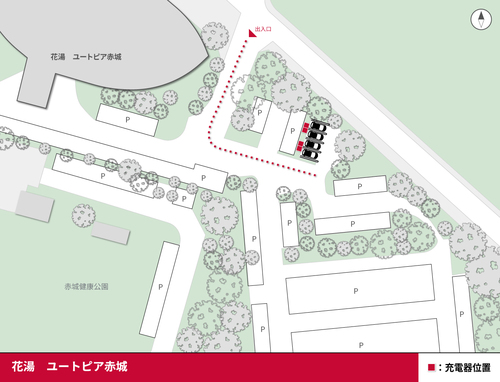 ご利用は宿泊者優先とさせていただきます。宿泊のお客様はホテルの公式サイトで詳細をご確認ください。 設置場所:線路(上越線)側の駐車場入り口から敷地内に入ります。道なりに進み2つ目の通路を左折した先、建物沿いの車室にEV充電器があります。 充電器には鍵がかけられていますので、ご利用を希望される際にはフロントまでお申し付けください。 最大出力6kW