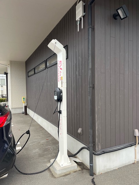 祝祭日24時間設置場所:「群馬トヨペット 中之条バイパス店」と「あがつまメモワール」本館の間の道を進み、1つ目の交差点を左折した右側、別館「家族葬ホール 詩庵」の建物壁沿い右端の車室にEV充電器があります。 どなたでもご利用いただけます。 最大出力6kW