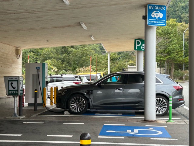 二口急速充電。ただPA出口側にあるので、充電後に急速するのは難しかなあぁ😭