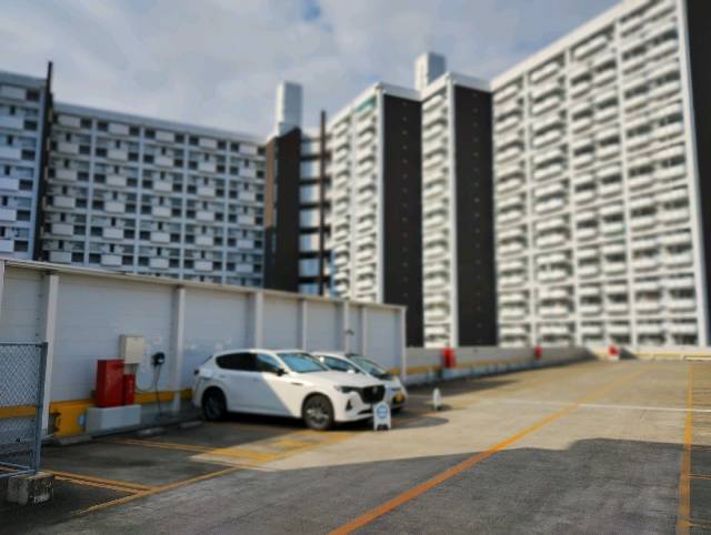 EV用普通充電設備は、敷地東側(海側と書いた方が良いのかも?)の立体駐車場入口を入るとすぐ右側に設置されています。 入口には「高さ制限2.1m」と掲示されています。 ルーフボックス等を取り付けたSUVやミニバンなどは注意が必要です。 走行ルート的には、立体駐車場1Fをぐるっと一回り走った一番最後になります。 充電設備3台+充電用駐車スペース全数にカラーコーン設置なので一定のエンジン車駐車防止対策が施されています。 私が充電を始めた後にサクラが充電を始めて私より前に離れていましたが、カラーコーンは戻していませんでした。 カラーコーンは充電に関係ないエンジン車の駐車を防ぐ有効な手段です。 「面倒くさい」と言う「自分は充電出来たからそれで良い」ではなく、全ての充電設備利用者が安心して使用できるように充電用駐車スペースから出発する時にはカラーコーンを充電用駐車スペースの中央に戻しましょう!