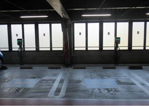設置場所:立体駐車場の屋上へ進み、中央の壁沿いの上りスロープ横にある車室にEV充電器があります。 どなたでもご利用いただけます。 最大出力6kW