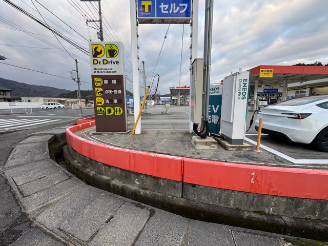 交差点側の角に急速充電器があります。 道路向かい側にはセブンイレブンもありますので、休憩にも向いた充電スポットだと思います。