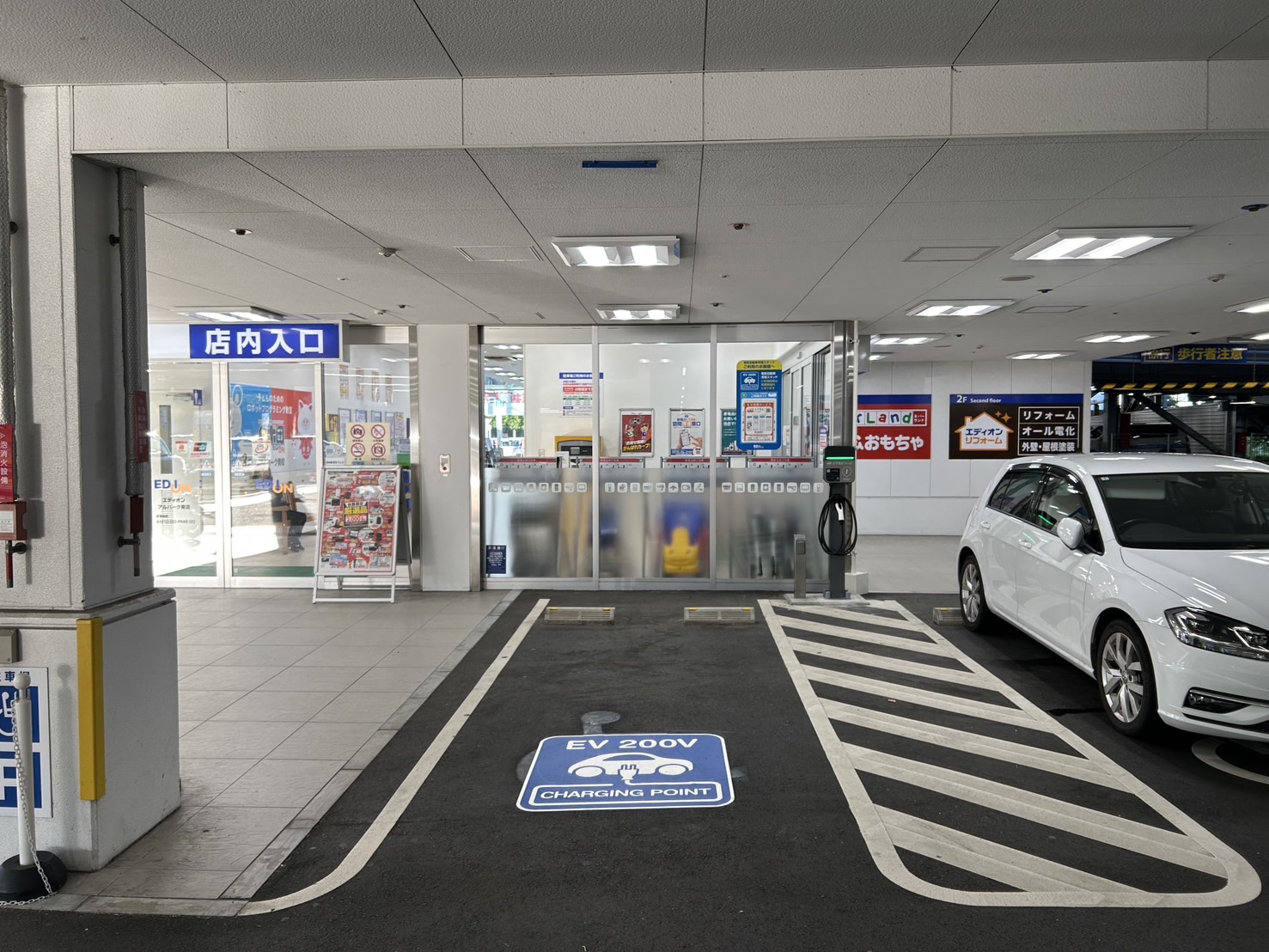 設置場所:店舗向かって右側の車室にEV充電器があります。 最大出力6kW