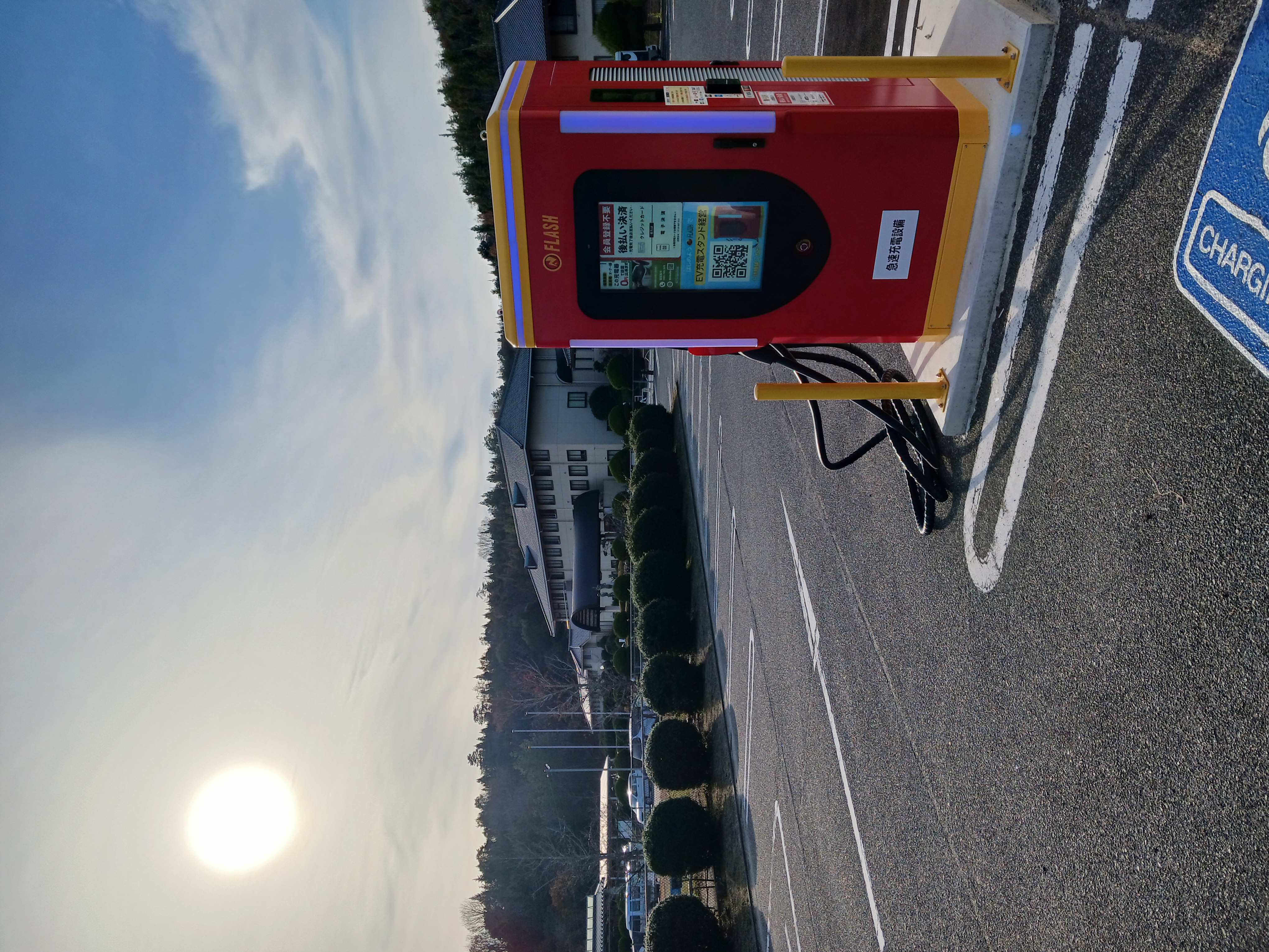 について 充電有料。 クレジットカード決済または二次元コード決済 kWh従量課金制(44円/kWh) 充電終了後に決済をせずに3分経過すると1分あたり100円加算。