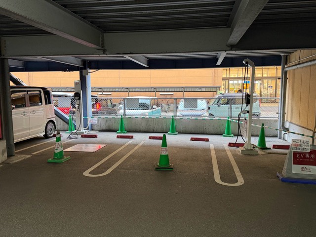 充電器の位置がかなり南端に位置するので、 もし今後増設する場合は、北や東の平面駐車場に設置した方が良いように思えます。 映画館やゲームセンター、各種の飲食店があり中型のショッピングセンターという施設でさらに4口増設しても良いように感じました。