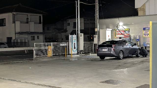 ガソリンスタンドの奥に設置されています。 洗車機あとの拭き取り場所なので、普通に使われてます。 洗車後に充電しながら、拭き取りすることができます。