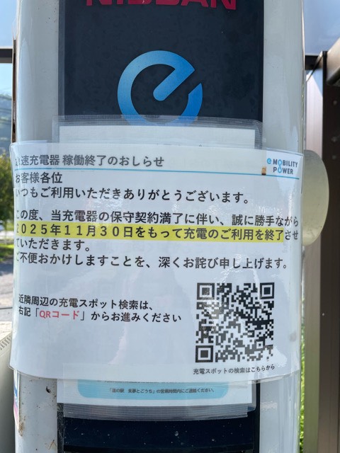 ★施設ご担当者様より★ こちらの充電器は(2025/11/30)をもちまして廃止となります。 ★オフィシャルサイトより確認★ 現在、特定の車種が、一部の急速充電器で充電した際、充電できない等の不具合が発生しています。 ただいま、車両メーカー、充電器メーカーと共に、原因解明と不具合の解消に向けて取り組んでおります。 加えて、不具合が発生した場合には、早期復旧に努めております。 つきましては、以下の対象車種をご利用のお客さまにおかれましては、不具合が解消されるまでの間、充電器のご利用を控えていただきますよう、お願い申し上げます。 対象車種:VOLVO C40
