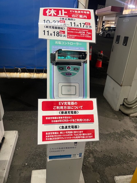 ★オフィシャルサイトより確認★ 2025/10/24(金)~2025/11/14(金)の間、急速充電器は入れ替え工事のためご利用いただけません。