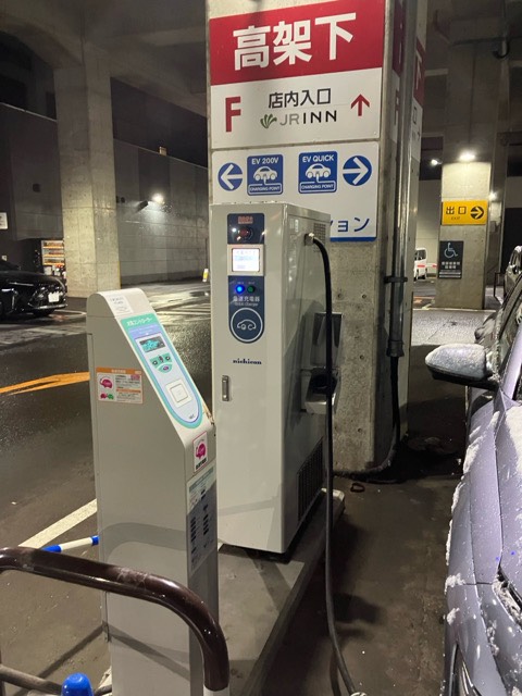 • 冬でもしっかり除雪してありました。 ガソリンスタンドの急速充電器は冬季も安心して使えそうです。