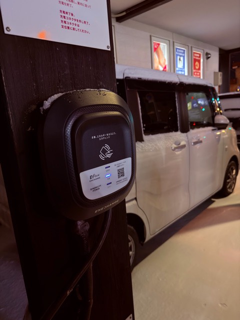設置場所:施設横、奥の車室にEV充電器があります。 どなたでもご利用いただけます。 最大出力6kW