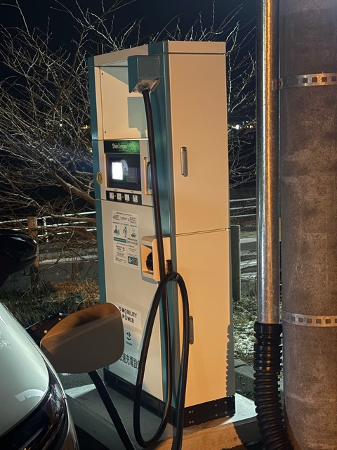充電器は駐車場入って右奥。 新電源の50kwです。