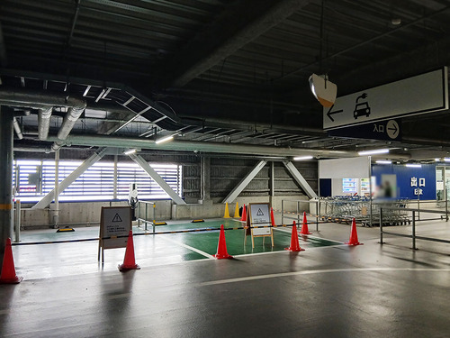 立体駐車場、西側の3階の階段の近くにあります。 ここは4台に対しコーンが2つ置いてあります。 空いている時間でしたのでコーンのないところで充電しても、まだ2台確保されているので、コーンの移動の手間もなく気持ちよく充電ができます。 最も混雑するような時間帯だとどうか分かりませんが、そのような場合はその日の営業開始時か、前日の営業終了時の片付けの時に適切な数のコーンを置いてもらえるだけで良いかと思います。