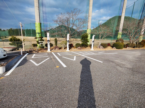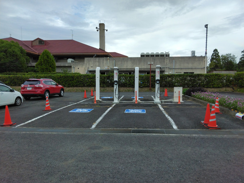 施設建物と道路を挟んだ駐車場の方にあります。マップで言うと「南」の駐車場の「西」の端にあります。 少し北西の「山田錦発祥のまち・多可」では90kWの充電器がもうすぐサービス開始されます。これは予想以上の嬉しいことですね。