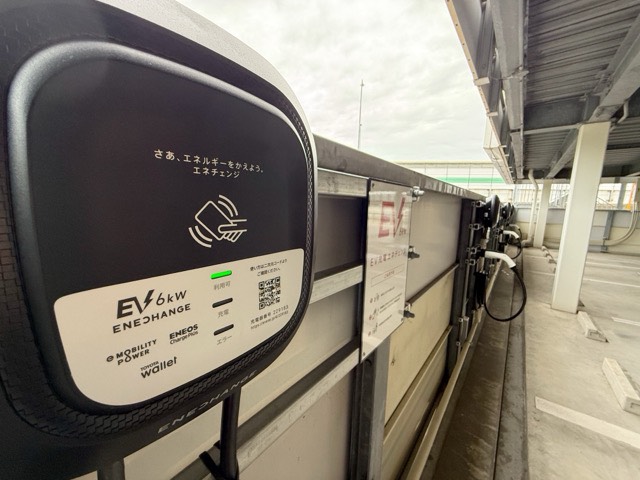 この施設はシステムの都合上、(1)~(3)に分かれて登録されています。 -------------------- 設置場所:立体駐車場5階 L駐車場 充電6時間までの範囲で選択可。 ENEOS Charge Plus会員の場合、最大出力6kW