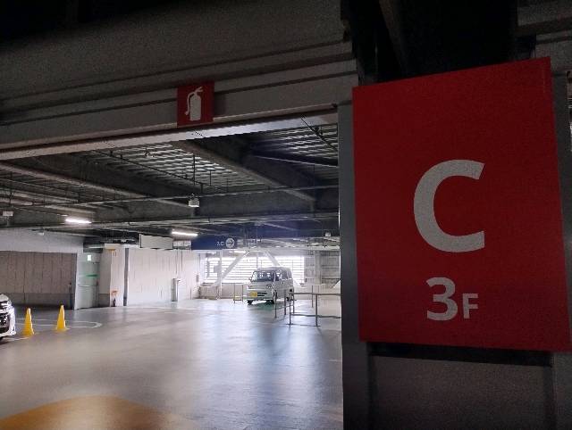 EV用普通充電設備は「立体駐車場3階C区画南端」に設置されています。 「エレベーター乗り場東隣」とか「以前のパナソニック製の普通充電設備と同じ位置」と書いた方が解りやすい方もいらっしゃると思います。 (場所が解りやすいように充電設備が正面に大きく写っていない写真を投稿します) 今回設置されたのは「エネチェンジ6kW普通充電設備(日東工業製)2台」と以前と同時に充電出来る台数は同じです。 以前のスタンドアロンとは違ってカードリーダーもないので、eMP対応カード等も利用出来ません。 充電するにはEV充電エネチェンジのアプリが必須です。 以前よりも充電待ちに遭うリスクは減ったと言えそうですが、駐車可能台数や店舗の特徴(一度入店すると数時間滞在する方が多い)事を考えると設置台数2台は明らかに台数不足。 12/4と言う普通の木曜午後の店舗としては明らかに空いている時間帯ですら充電設備2台とも充電中なので!! 別の言い方をすれば、テーマパークと同等の基準で設置台数を検討するべき。 長期休暇時のピーク時を考えると、最低でもあと4台追加して合計6台が最低限レベルだと感じました。