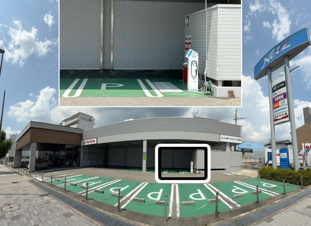 EV用普通充電設備は、整備ピット手前の駐車スペースのうち最も東側に設置されています。