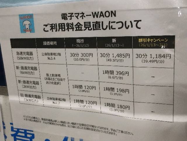 他のイオンモールと同様に2026年1月13日から値上げする旨の掲示が有りました。