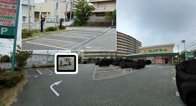 「スギ薬局」側出入り口のすぐ右側の車室にEV充電器があります。(駐車場内は一方通行です) 最大出力6kW 施設の電気容量により一時的に充電器の出力が変動する場合があります。