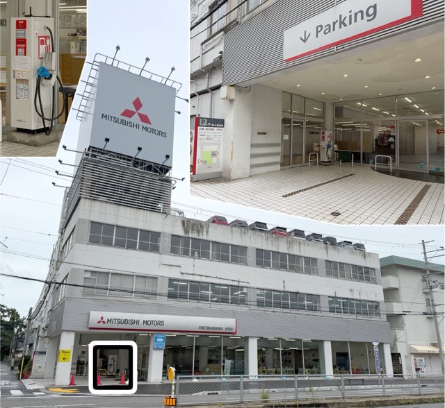 案内掲示板が出ていないので夜は特にわかりにくい場所に充電システムがあるなんとかしろよ三菱。