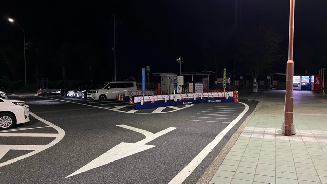2025年6月27日に撮影した写真を投稿します。 充電設備はSAに入ってひたすら左側を見ていると左側に見えてきます。 現状は最大100A放電する設備です。 2台分の駐車スペースが有るので、200A以上放電する2台同時充電可能な充電設備への更新を期待したい頃合いです。