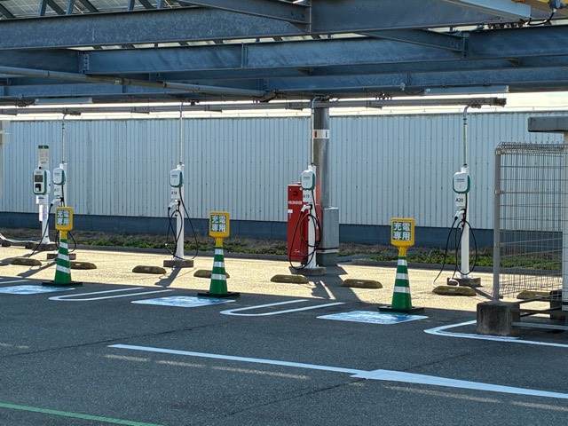 11/12現在、NEC製CHAdeMO充電設備2台が使用不可の状態は変わらず。 投稿写真の立て看板が置いてありました。 「新しい機器を手配中ですが、復旧時期は未定」だそう。 ENEOSチャージプラスのシステムのニチコン製CHAdeMO充電設備と豊田自動織機製の3kW普通充電設備は使用可能です。