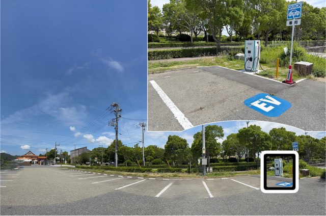 道路から見て左側(東)の駐車場に入って左側の奥までいくとあります。 以前と同じ位置ですが車室に余裕ができたと感じます。少し東にある「道の駅 みつ」は次に更新する時に充電カードの使えないタイプになる予定だったと思いますが、こちらは充電カードも使えるタイプで良かったと思います。 こちらの施設の西側にある第2駐車場には目的地充電であるエネチェンジがあってほしいと思います。