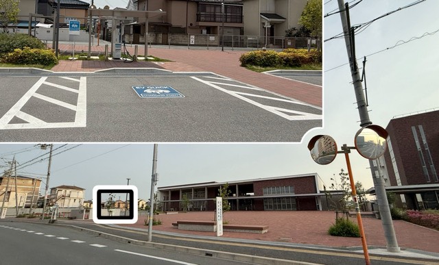• 大通りから入れば右の奥、西側の端にあります。 写真改定、充電器の枠の位置を訂正