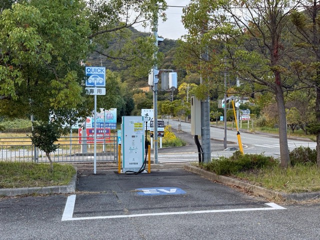 施設建物と道路を挟んだ駐車場の方にあります。マップで言うと「南」の駐車場の「西」の端にあります。 少し北西の「山田錦発祥のまち・多可」では90kWの充電器がもうすぐサービス開始されます。これは予想以上の嬉しいことですね。
