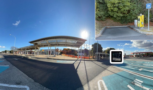 施設建物を越えてガソリンスタンドの手前にあります。写真追加 黄色い充電器を観れるのもあとわずかかもしれません。