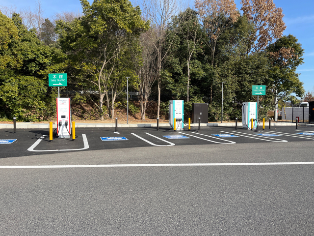 150kWの充電器(2台同時に充電可)が1基と90kWの充電器(2台同時に充電可)が2基あります。 ★データチームより★ 最大出力150kW、90kWは、お車が対応しており、かつ1台で充電した場合の参考値です。