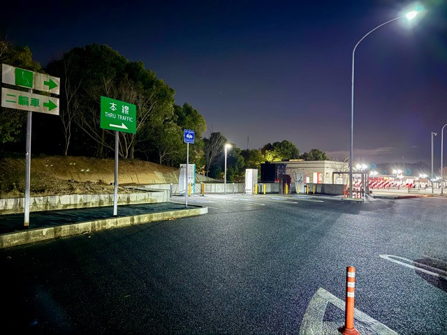施設建物を超えていくとガソリンスタンドの手前にあります。文書改訂 あまり充電に詳しくないような方は、おそらく手前(施設に近い便利なほう)から入って充電していくと思いますので、高速な充電器は遠くにおいたほうが良いかなとか思ったりもします。 90kW以上しかないことで、50kW以下の充電能力のEVの方にはかなり勿体無いことに、充電器の出力で値段を変えるのではなく、充電中に50kW以上の出力が出なかった場合は、50kW以下の価格になるなどの仕組みが欲しいですね。 エネチェンジの普通充電器はeKクロスEVや日産サクラなど特にユーザーが何かしなくとも3kWの値段になります。うろ覚えではありますが、たしか充電中の出力が平均?4kW以下になると金額が3kWの値段になるというのを見たことがあります。そのような工夫が急速充電にも欲しいと思われます。