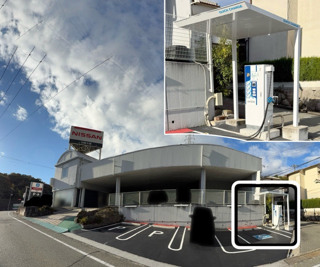 道路から見て中ぐらいの看板の近くにあります。写真追加統合 90kWの2口は通常より出力が大きくて良いですね。