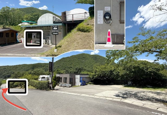 設置場所:県道292号線沿いの車室にEV充電器があります。 どなたでもご利用いただけます。 最大出力6kW