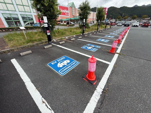 日曜日に訪れました。 誰も充電していなくて寂しいですが、1台充電された方が前後にいたようです。 まだ充電の使用率は上がってないのだと思いますが、コーンをのけないと充電できないというのは、敷居を少し高くしているのでは無いかとも思います。微妙な差だとは思いますが・ 微妙な差だとは思いますが、それでも充電をすることにより、「使われている」という認識が増えてくるのがよいことだとおもいます。 それと、充電に関係ない方でも、これより遠い場所の車室にたくさんのガソリン車が駐車しており、写真奥の車室を見てもかなり駐車率が高いと感じます。気持ち良くはみてないと思います。いつでもコーンばかりで使われてないことで「EVはやっぱり普及しない」と思われるかもしれません。 一度コーンを端ではなく間にある2つほど減らして、そこに、どの程度、非充電車がとまるのか、また、充電する人はそこで充電するのか、など試してみても良いのかもしれません。
