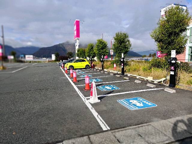 日曜日に訪れました。 誰も充電していなくて寂しいですが、1台充電された方が前後にいたようです。 まだ充電の使用率は上がってないのだと思いますが、コーンをのけないと充電できないというのは、敷居を少し高くしているのでは無いかとも思います。微妙な差だとは思いますが・ 微妙な差だとは思いますが、それでも充電をすることにより、「使われている」という認識が増えてくるのがよいことだとおもいます。 それと、充電に関係ない方でも、これより遠い場所の車室にたくさんのガソリン車が駐車しており、写真奥の車室を見てもかなり駐車率が高いと感じます。気持ち良くはみてないと思います。いつでもコーンばかりで使われてないことで「EVはやっぱり普及しない」と思われるかもしれません。 一度コーンを端ではなく間にある2つほど減らして、そこに、どの程度、非充電車がとまるのか、また、充電する人はそこで充電するのか、など試してみても良いのかもしれません。