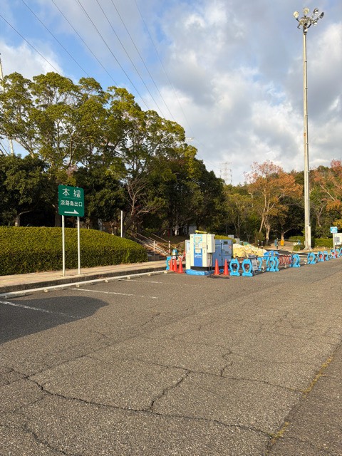 淡路南SAが使用不可だったのでこちらへ。IC出口から峠道をグネグネ行くと、左手にここに入る道が出現します。でかい蜂がいました、注意。