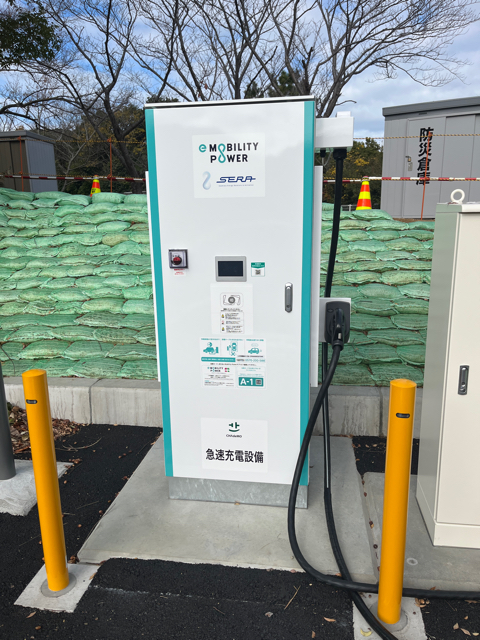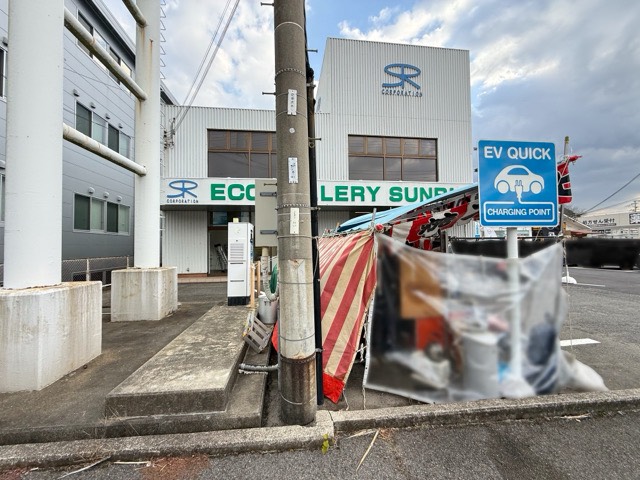 敷地に入ってすぐ左にあります。 この時はイベント中で屋台がありました。 エコQ電で1回1000円(税込)、今時で20kWにしては高すぎです。値段を変更して納得価格にしてほしいです、