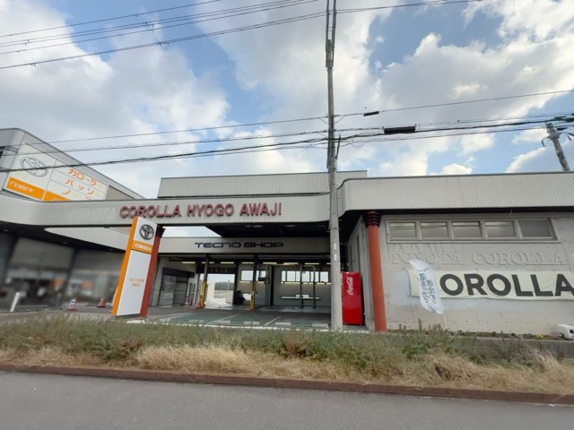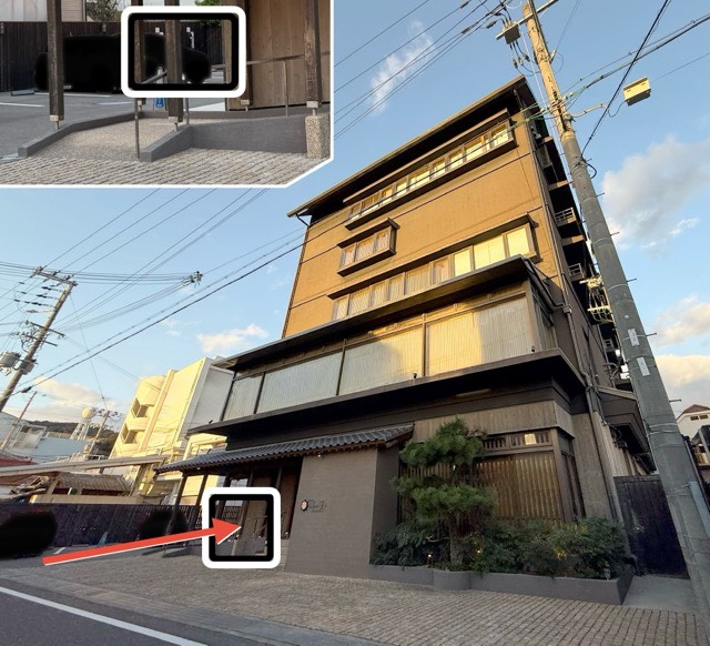 店舗中央のスロープをくぐって裏側にある駐車場に設置されています。普段はカバーまで掛けられていて、外からはまず分かりません。