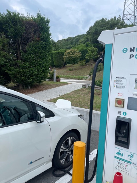 新型リーフ、充電出来ませんでした。。。淡路島南PAで充電しますわー