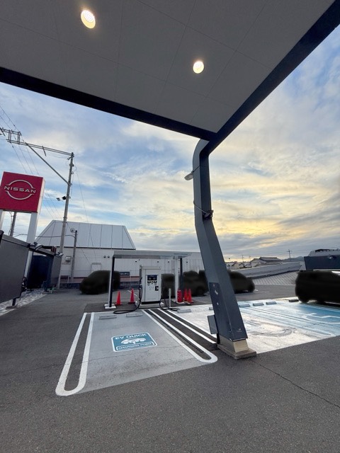 [急速充電器] 90kWの充電器が1基(2台同時に充電可)あります。 ★データチームより★ 最大出力90kWは、お車が対応しており、かつ1台で充電した場合の参考値です。 [普通充電器] コンセントは店舗の営業時間内のみお使いいただけます。 日産車限定。