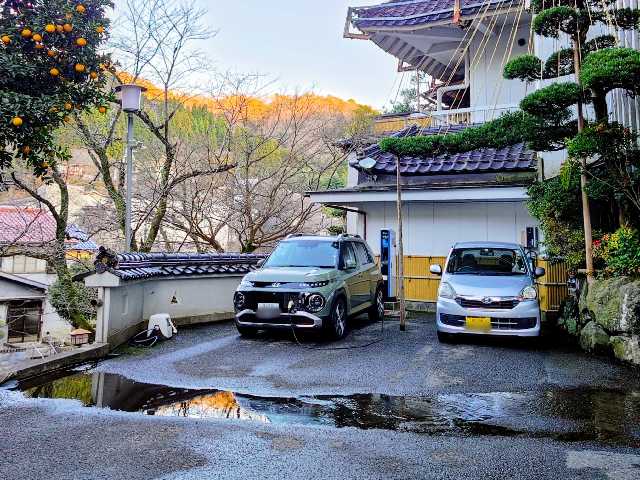 お宿の旧ブログにも書かれておられるように、オーナーさんがPHEVやEVに積極的なため、普通充電機が複数あり、宿泊者はバレーサービスで鍵を渡すだけで、充電までしてくださいます。朝は満充電で出発できました。
