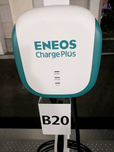 この施設はシステムの都合上、(1)、(2)に分かれて登録されています。 -------------------- 設置場所:平面駐車場A区画付近(1階 国道側北入口付近) 充電6時間までの範囲で選択可。 ENEOS Charge Plus会員の場合、最大出力6kW
